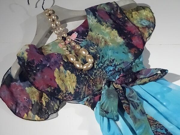 ブル-地にMIXのロ-マ風ロングワンピ-スです。ウエストはゴムになっていて共布ウエストリボンがついています。エレガントで優しい印象を与えてくれる一着。デート、お呼ばれ、パーティ、コンサート、結婚式にと、さまざまなシーンに活躍してくれます。ファスナーなし。裏地あり。