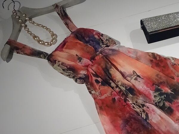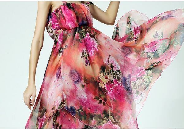 ピンクとMIX色のロ-マ風ロングワンピ-スです。裾がアシンメトリ-になっていて女性度UP!。エレガントで優しい印象を与えてくれる一着。デート、お呼ばれ、パーティ、コンサート、結婚式にと、さまざまなシーンに活躍してくれます。ファスナーなし。裏地あり。