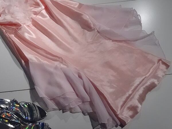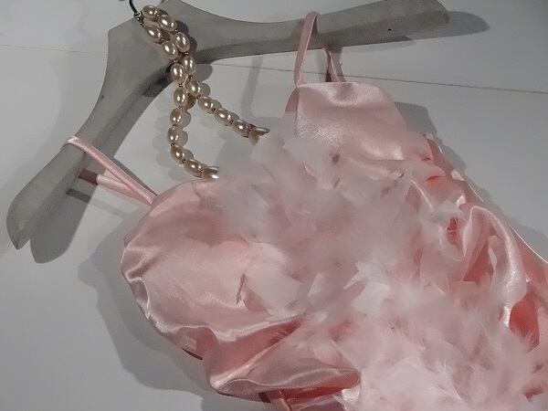 胸元羽根飾りサテンロングドレスです。胸元は羽根飾りがほどこしてありとても豪華な印象を与えてくれます。パーティ、イベント、結婚式の二次会、コンサートなど幅広いシーンで活躍してくれる一着です。肩紐調整不可。胸カップ仕様。左サイドファスナー有。裏地なし。