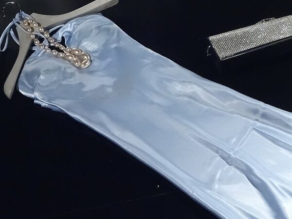 爽やかなライトブルーのマーメイドロングドレスです。胸カップ仕様のホルダ-ネックです。さわやかなデザイン。パーティ、イベント、結婚式の二次会、コンサートなど幅広いシーンで活躍してくれる一着です。オーガンジーのストール付。。胸カップ仕様。左サイドファスナー有。裏地なし。