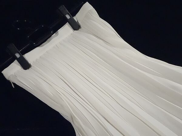 プリ-ツロングスカ-トです。歩く度に揺れる裾がとても女性らしいスカ-トです。裏地付。ファスナ-有。