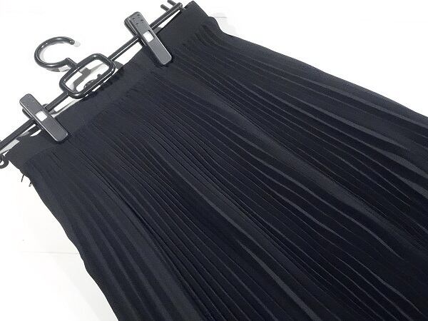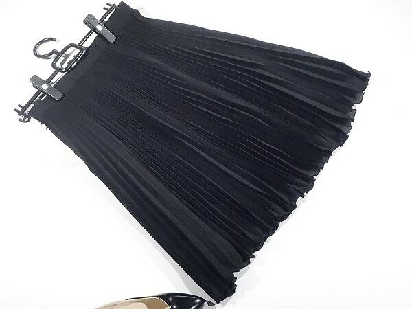 綺麗な黒のプリ-ツスカ-トです。歩く度に揺れる裾がとても女性らしいスカ-トです。裏地付。ファスナ-&ホック有。日本製。
