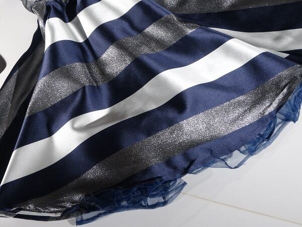 人気のAラインのボーダードレスワンピースです。大人っぽい色合いで結婚式やパーティーにもお薦めの一着です。背中ファスナー有。裏地有。