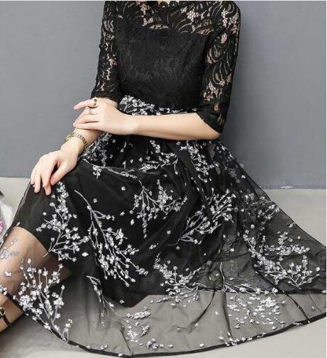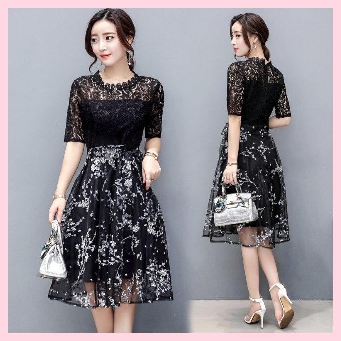 花柄チュ-ルレース仕立てパ-ティ-ワンピ-スです。トレンド感たっぷり色の美しいエレガントなワンピ-スです。ハイウエストのリボン切替で脚長効果のあるデザイン性のあるスタイルがとても魅力的な一着です。全体的に女性度UPに仕上げられています。背中ファスナ-有。同布ベルト付き。