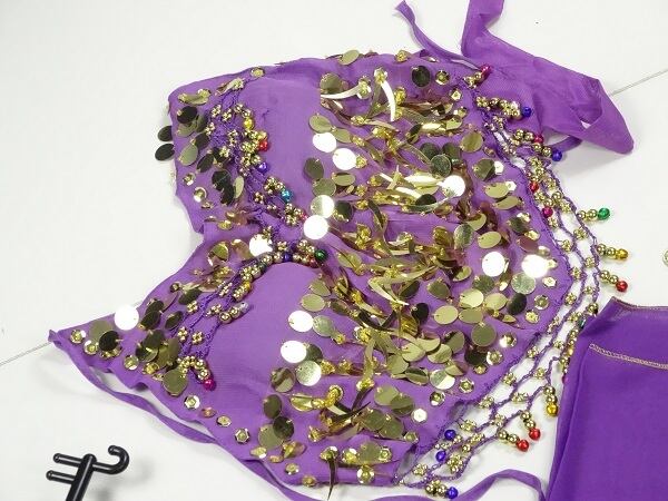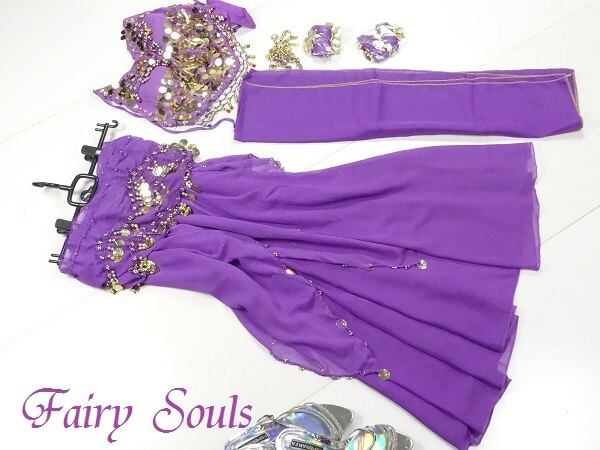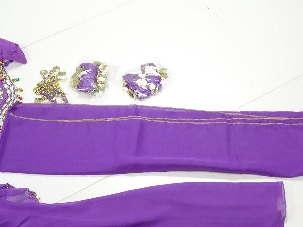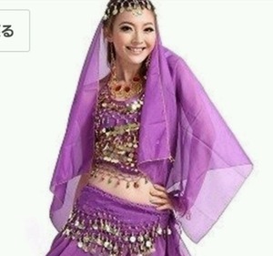 本格的なベリ-ダンス衣装です。ブラトップ・ヒップスカ-フ・ヒップスカ-ト・ベ-ル・音の鳴るリストバンド(両手)・音の鳴るリストバンド(両足)。裏地なし。パット有。