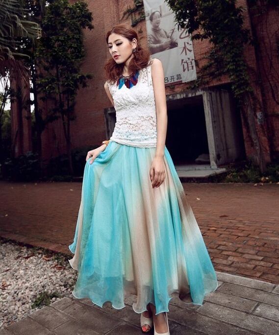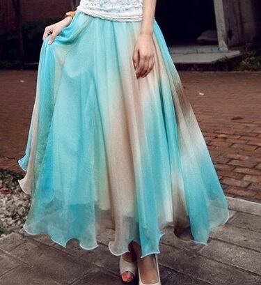 やさしいパステルカラーのグラデーションが美しいマキシ丈のスカート。軽やかで柔らかいシフォンが動くたびに足元を美しく魅せてくれます。ウエストは総ゴムでサイズ的にゆとりを持って着用頂けます。また、ウエストを胸もとにもってくると、ベアタイプのワンピースとしても楽しんで頂けるお得なデザイン。普段着はもちろん、リゾートやライブ、パーティにと様々なシーンで活用頂ける一着です。裏地あり。