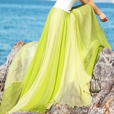 やさしいパステルカラーのグラデーションが美しいマキシ丈のスカート。軽やかで柔らかいシフォンが動くたびに足元を美しく魅せてくれます。ウエストは総ゴムでサイズ的にゆとりを持って着用頂けます。また、ウエストを胸もとにもってくると、ベアタイプのワンピースとしても楽しんで頂けるお得なデザイン。普段着はもちろん、リゾートやライブ、パーティにと様々なシーンで活用頂ける一着です。裏地あり。紐ベルト付。