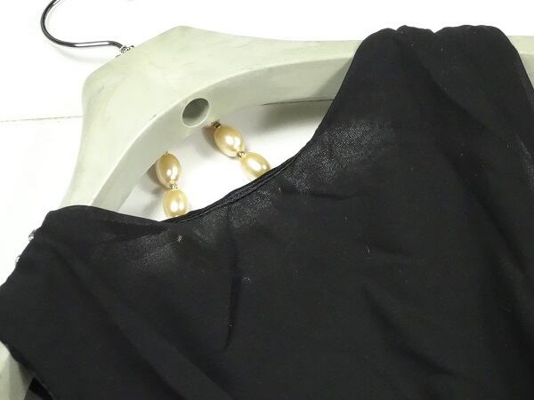 シフォンのウエスト切替ドレスワンピです。華やかなディテ-ルがとても素敵です。かぶるタイプ(ファスナ-なし)。裏地有り。