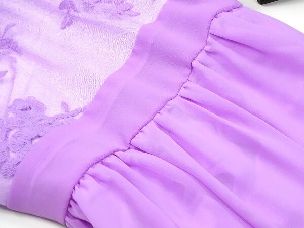 綺麗なラベンダーパープルのドレス。背中はウエストまでレース仕様。胸元のレースがデコルテラインを程よくセクシーに見せてくれています。パーティ、イベント、結婚式の二次会、コンサートなど幅広いシーンで活躍してくれる一着です。胸カップ仕様。背中ファスナー。裏地あり。