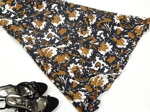 かっちりとしたシャツ襟に、ウエストまでの隠しボタン留めがお洒落なシャツワンピース。全体に黒と茶のボタニカル柄がプリントされていて、派手すぎずシックな雰囲気を醸し出しています。背中ファスナー。裏地あり。
