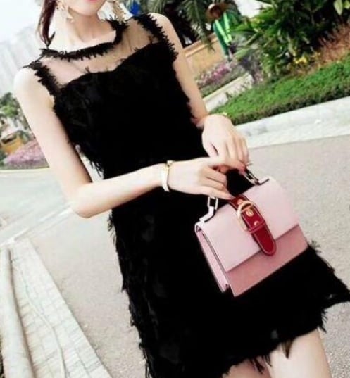 チュールとフェザー仕様のワンピース。胸元は透け感のあるチュール仕立て。全体にフェザー仕様がほどこされた魅力的な一着です。背中ファスナー。裏地付。