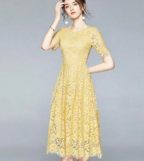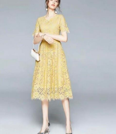 総レ-スフォーマルミモレ丈半袖ワンピ-スです。スリムに見えるデザインで大人の女性を醸し出してくれる一着です。裏地あり。背中ファスナ-有。