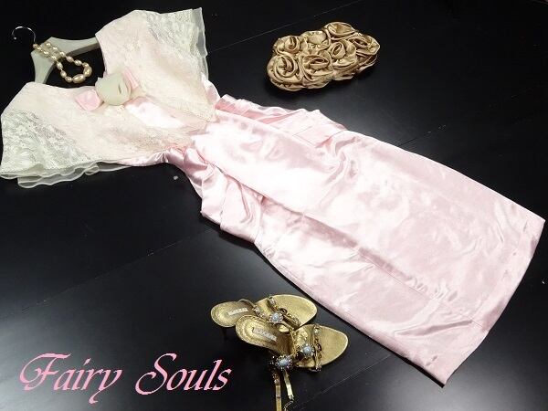 フォ-マルワンピ-スドレスです。3種類の生地を使用し光沢感があります。カラオケ・発表会・やステ-ジ衣装に最適です。裏地あり。後ろファスナ-あり。肩パットあり。コサ-ジュリボン取り外し可。スリット24cm。