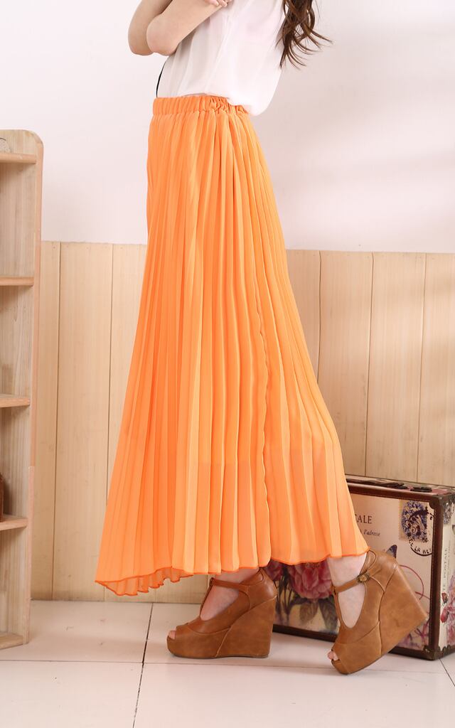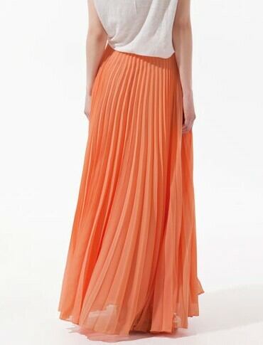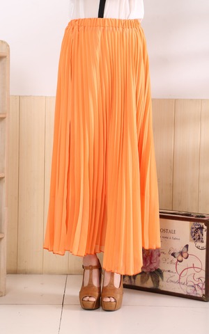 プリーツが上品なマキシ丈スカートです。ウエストはゴム仕様でゆったりと着て頂けます。風に優しくなびき、歩くたびに着る人の足元を美しく見せてくれる一着です。裏地有。