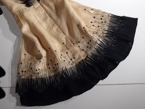エレガントな黒刺繍が豪華です!しぐさを優雅に見せて、エレガントなカッコ良さを演出してくれる、とっても贅沢感溢れるお洋服です。裏地付。左脇ファスナ-有。ボタンあり。