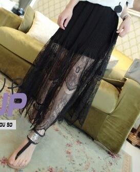 レ-スのボヘミア風ロングスカ-トです。風になびき全体が揺れとても女性らしいスカ-トです。適度な透け感も魅力的です。裏地有。