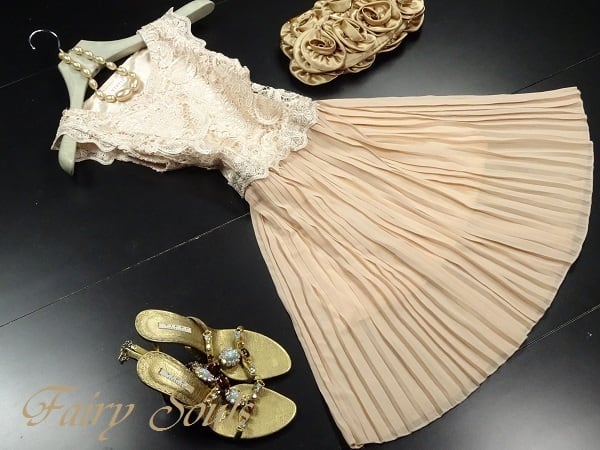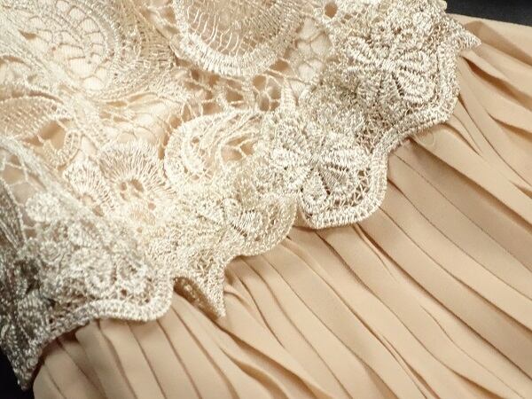 花柄刺繍とプリ-ツの贅沢なワンピ-スです。普段着はもちろんパ-ティ-や結婚式にお薦めです。裏地あり。
