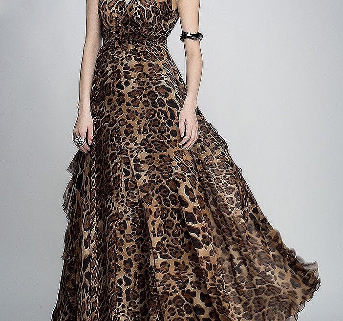 柔らかい生地に、レオパ-ド柄がとてもエレガントなマキシ丈のワンピースです。スカート部は生地がたっぷり使用されていますので歩くたびの揺れ感がとても女性らしくまるで女優になった気分にさせてくれます。大人のエレガンスさを感じさせてくれるシンプルデザインです。裏地あり。