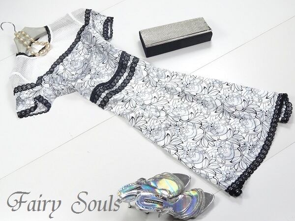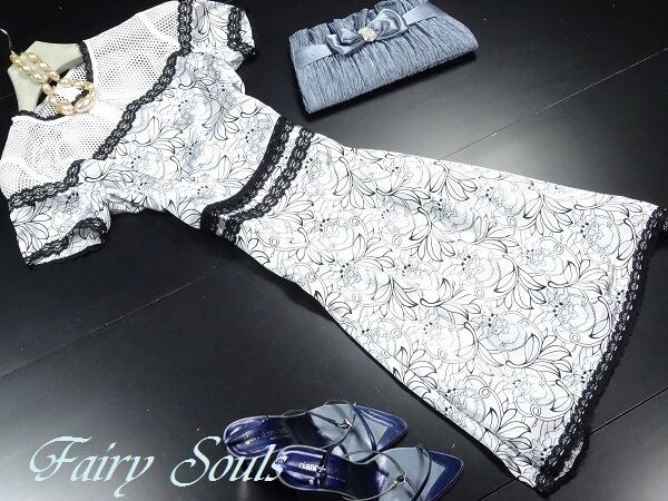 総柄レイヤ-ド風メッシュ切替ワンピ-スです。裾にはトップスと同じ刺繍レースがアクセントにあしらわれています。シルクの着心地がとても良くシックにもゴージャスにもなる重宝する一着です。背中ファスナーあり。ホックあり。裏地あり。
