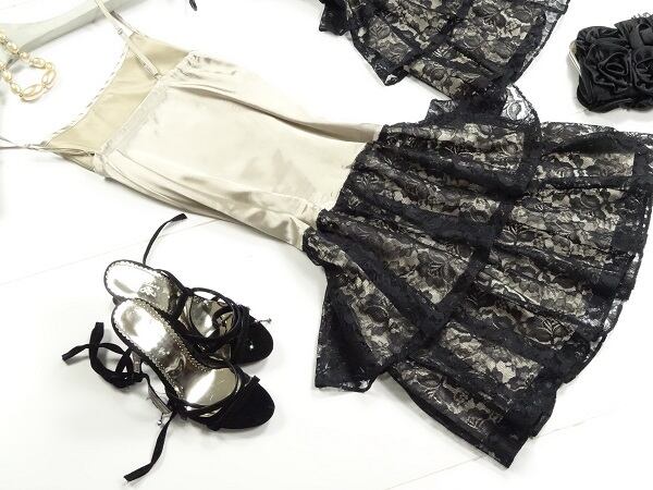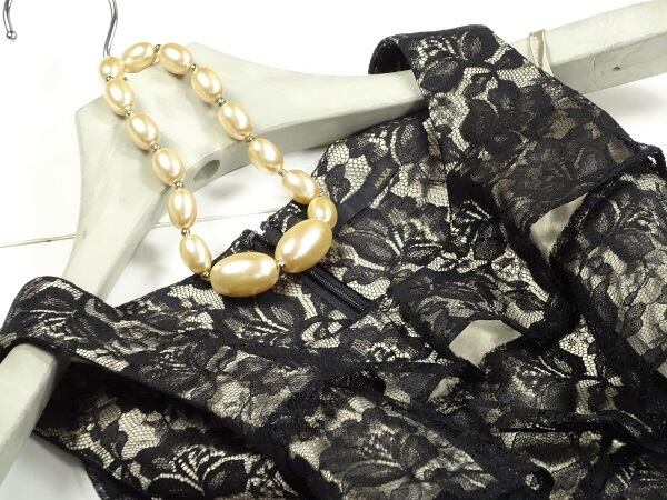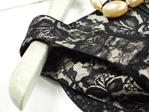 豪華総レ-スティア-ドドレスです。黒とゴ-ルドのベストマッチの色でとても素敵です。裏地あり。背中ファスナ-有。