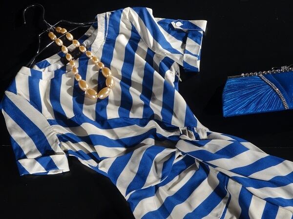 太目のボーダーが優雅でマリン気分エレガントなデザインが上品かつ優雅な女性を演出してくれます。色々な場面で貴方を輝かせてくれます。裏地あり。