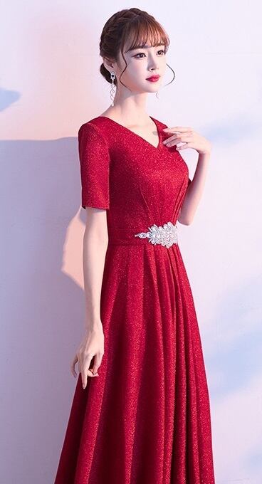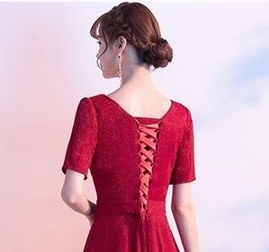 全体にラメが散りばめられたパーティ-ロングドレスです。光の当たり具合で輝く光沢が高級感を醸しだしてくれてます。ウエストの飾りも綺麗です。背中が網掛けになっていて紐の結び具合でサイズ的に多少調整できます。パーティやライブ、イベント、結婚式など、どんなシーンでも活躍してくれる一着です。背中網掛け。
