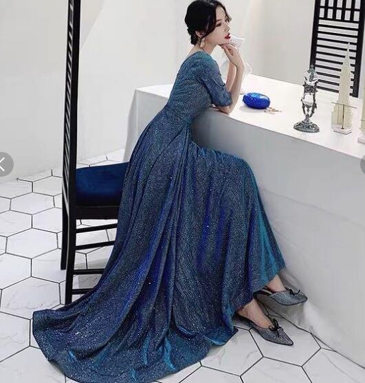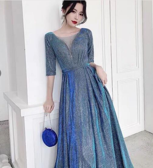 全体にシルバ-ラメが散りばめられたロングドレスです。光の当たり具合で輝く光沢が高級感を醸しだしてくれてます。パーティやライブ、イベント、結婚式など、どんなシーンでも活躍してくれる一着です。背中ファスナー有。裏地有。