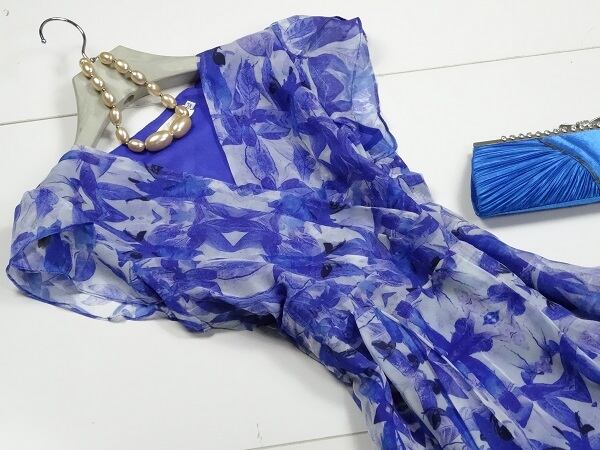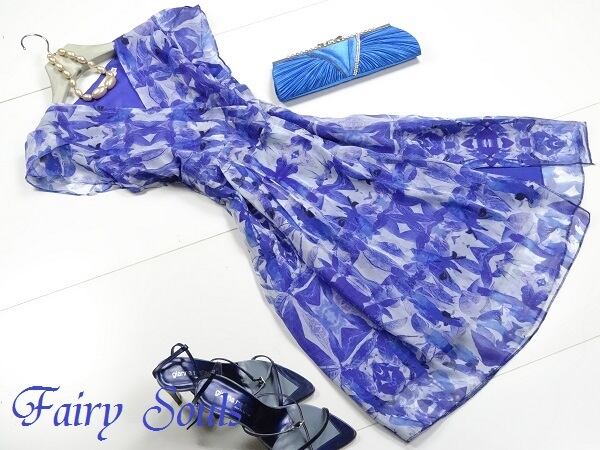 シフォンがふんわりと素敵なワンピ-スです。裾の開き具合が少し色っぽく女性度UP。裏地有り。背中ファスナ-有。左裾から23cm上までスリット有。