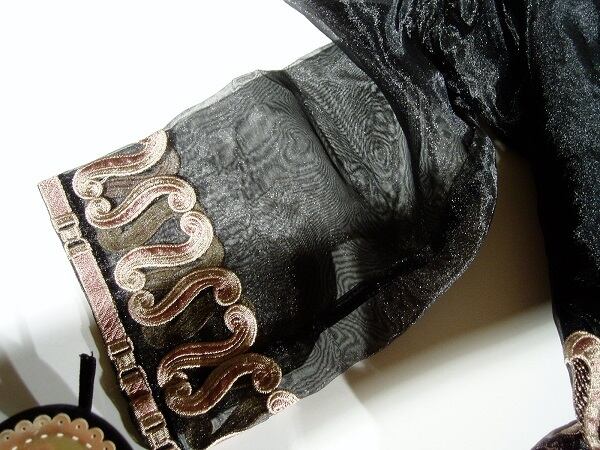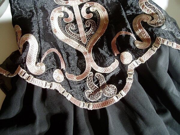 二色使いのエレガントな刺繍がとてもオシャレで優雅でカッコ良さを演出してくれる、とっても贅沢感溢れるお洋服です。裏地付。サイドファスナ-有。