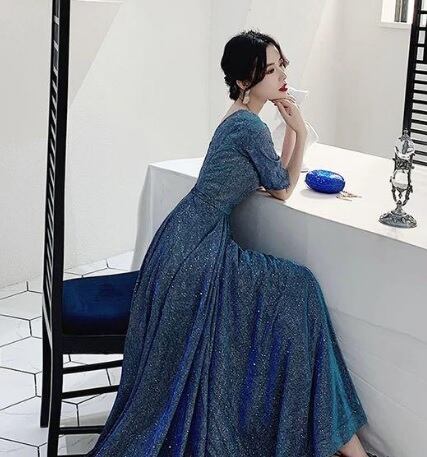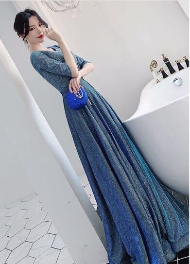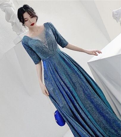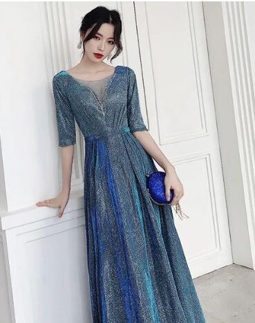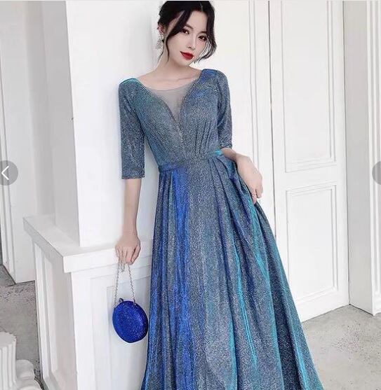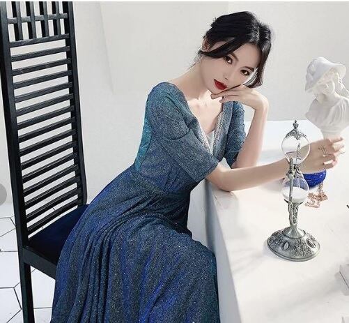 全体にシルバ-ラメが散りばめられたロングドレスです。光の当たり具合で輝く光沢が高級感を醸しだしてくれてます。パーティやライブ、イベント、結婚式など、どんなシーンでも活躍してくれる一着です。背中ファスナー有。裏地有。
