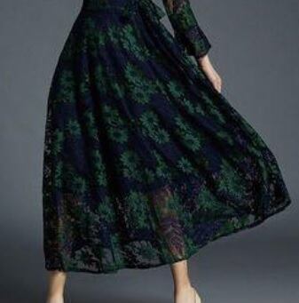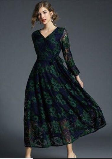 花柄が美しい総レースのワンピ-ス。グリーンの下地の上に透け感が美しい花柄カットの総レースをかぶせたエレガントなデザイン。胸元のV字カットと袖の透け感が女性らしさをアップ。ちょっとおしゃれな普段着にも、またフォーマルなシーンにも活躍してくれる一着です。背中ファスナー有。裏地あり。