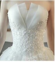 刺繍とチュ-ルのウェディング仕様のドレス。前と後ろでは丈の長さが異なるフィッシュテ-ルで清楚な白のサテン地の上に白の刺繍を施したチュールをあしらった華やかなデザインです。胸元部分は刺繍をあしったハートネックタイプで、胸元とデコルテラインが美しく見えるデザインです。背中は腰まで編み紐掛けになっているのでサイズ調整が可能です。パニエは付いておりませんが、ある程度ボリューム感がありますので豪華な印象になります。結婚式でウェディングドレスとしてはもちろん、パーティやライブ、イベントなどどんなシーンでも活躍してくれる一着です。裏地有。背中編み紐掛け。腰下ファスナー有。胸パット付き。