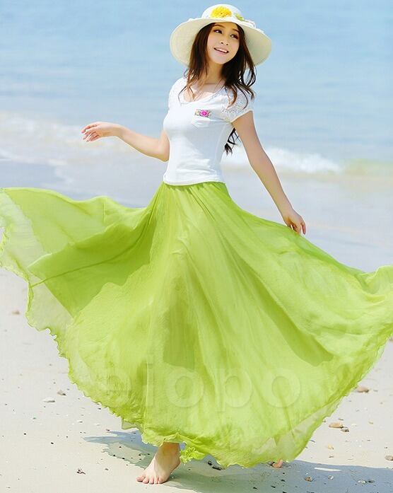 シンプルなシフォンのロングスカ-トです。歩く度にふんわりと揺れる裾が視線を集めます。!リゾ-トコ-デに最適!裏地付。