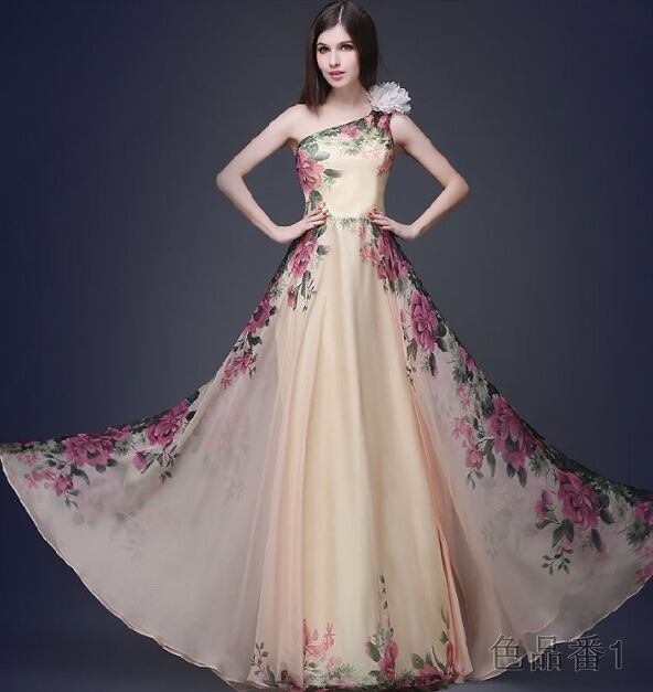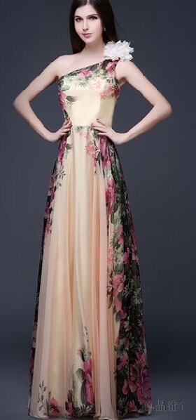 天使のようなとても見栄えのする豪華なプリントシフォンロングドレスです。スカ-ト部分はたっぷりと生地を使い大変ボリュ-ム感のある女性らしい素晴らしいドレスワンピ-スです。軽やかでしなやかな生地で裾が歩くたびにひらひらと揺れ、足元を美しく見せてくれます。裏地付。肩コサ-ジュ付き。右ファスナ-有。