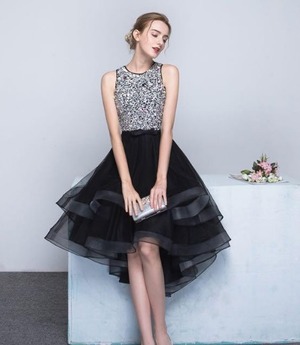 トップス部分がビジュ-で飾られた美しいフィッシュテ-ルパ-ティ-ドレスです。ウエストからスカート裾までのとても綺麗なシルエットが揺れるごとに着る人の足元を美しく見せてくれる豪華なドレスです。着丈の前が短く後ろが長いフィッシュテ-ルのデザインです。パーティやライブ、イベント、結婚式など、どんなシーンでも活躍してくれる一着です。背中ファスナー有。裏地付。