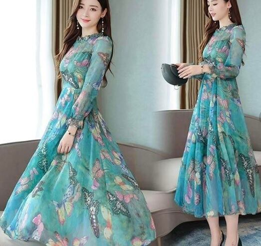 天使のようなとても見栄えのする豪華な蝶柄シフォンマキシ丈フレア-ワンピ-スです。スカ-ト部分はたっぷりと生地を使い大変ボリュ-ム感のある女性らしさを引き出してくれる一着です。軽やかでしなやかな生地で裾が歩くたびにひらひらと揺れ、足元を美しく見せてくれます。裏地有。右サイドファスナ-有。