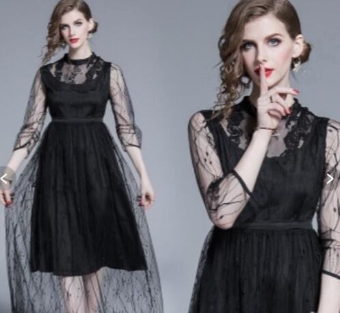 セレブシースル-ワンピ-スです。トップス部分の刺繍がとてもエレガントで透け感が大人の女性を十分に演出してくれる一着です。背中ファスナ-有り。裏地有。