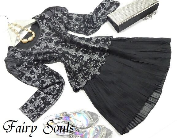 繊細なシルバ-の刺繍に上品なプリ-ツがとてもとてもオシャレで、しぐさを優雅に見せてくれる贅沢なお洋服です。ファスナ-なし。 裏地有り。