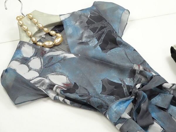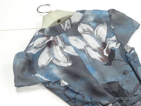 シルクの着心地がとても良いワンピ-スです。デザイン&プリントが素晴らしい一着です。裏地あり。背中ファスナ-有。布紐ベルト付き。