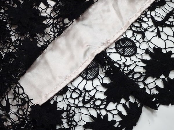 全体の総レ-スがとても素敵なワンランク上の女性を表現してくれます。上品で優しい大人の女性を表現してくれるお洋服です。背中ファスナ-有り。裏地有り。