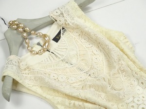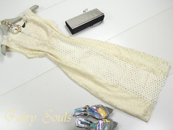三種類のエレガントなレ-スで作られたワンピ-スでネック部分は大振りな手編み風レ-ス・両脇サイドは繊細な花柄レ-ス・センタ-が和風な模様のレ-スで仕上げられています。清楚で品の良い仕立ての一着です。背中ファスナー。裏地あり。