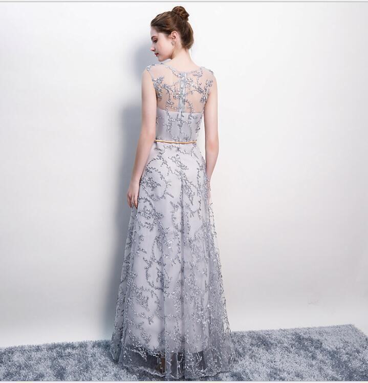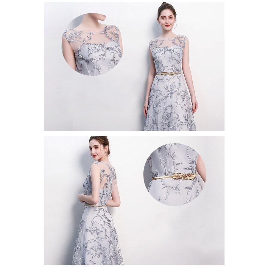 立体刺繍レースパーティ-ロングドレスです。デコルテの透け感がとても美しく大人の女性を醸し出してくれるエレガントなロングドレスです。全体に銀糸の刺繍が施されデザイン性のあるスタイルがとても魅力的な一着です。全体的に優しい感じに仕上げられています。背中ファスナ-有。胸パット付き。裏地有。ブロンズベルト付き。
