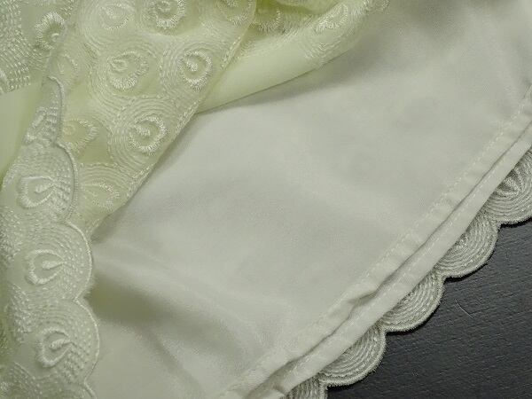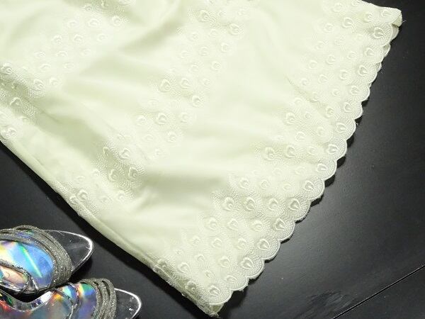 レースとハート刺繍のワンピース。胸元と背中にレースをあしらい、裾にかけて4段と、袖口に1段ハートの刺繍を施しています。エレガントで優しい印象に。デート、お呼ばれ、パーティ、コンサート、結婚式にと、さまざまなシーンに活躍してくれます。背中ファスナー。裏地あり。