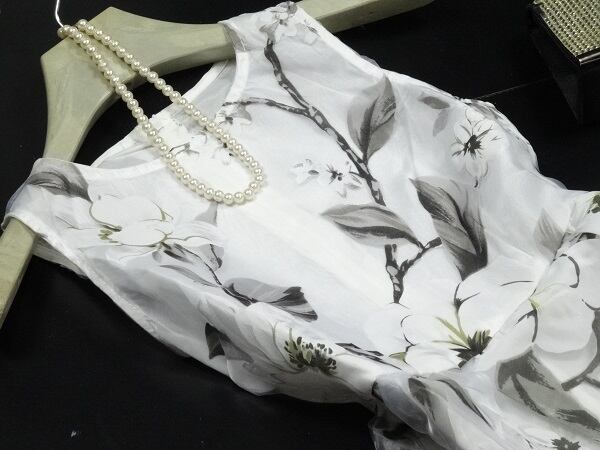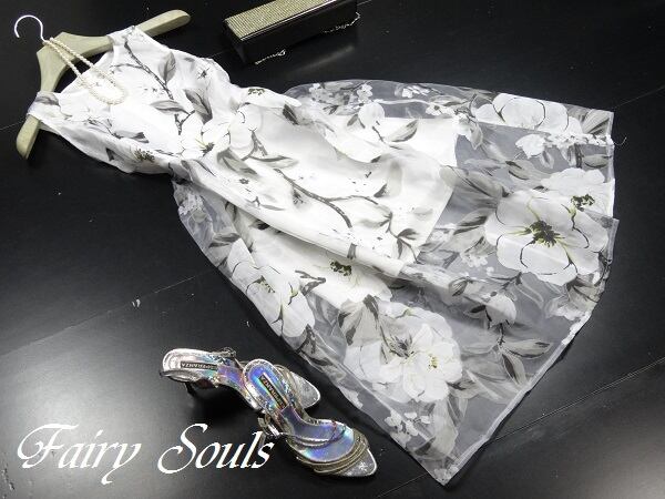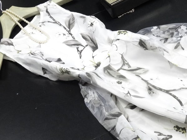 つややかサテン生地ボタニカル柄のワンピ-ス。つるつるとした白いサテン地に墨絵のようなシックな花模様をプリント。シンプルなフォルムは飽きのこないデザイン。ちょっとおしゃれな普段着から、デート、パーティなど様々なシーンで活躍してくれる一着です。背中ファスナ-有。裏地あり。