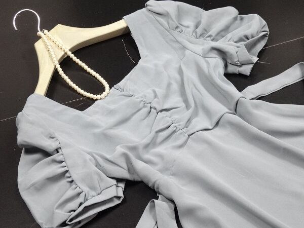 リボンベルト付ワンピ-スです。裾までゆったり広がるシンプルデザインで、同布のリボンベルトをきゅっと結んでアクセントに。リボンベルトは取り外し不可です。ちょっとおしゃれな普段着としても、またパーティやコンサートなどフォーマルなシーンでも活躍してくれる一着です。裏地なし。背中ファスナ-有。