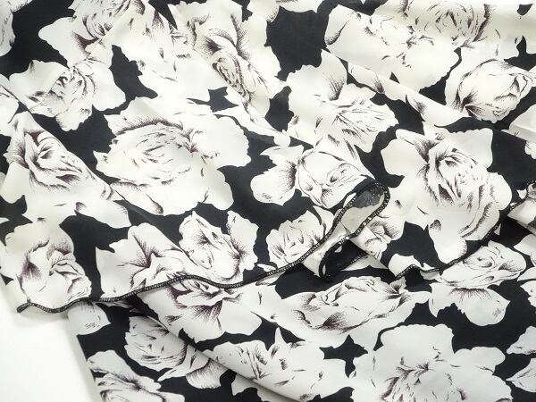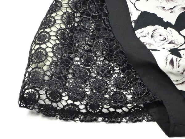 全体に散りばめられた薔薇のイラストと繊細な刺繍がとてもお洒落な贅沢なワンピ-スです。裏地あり。背中ファスナ-有。