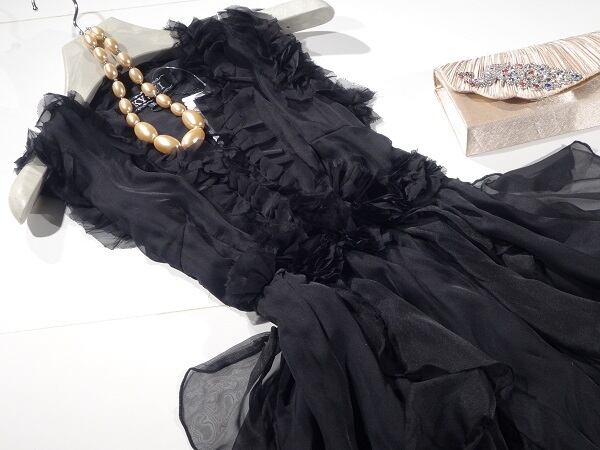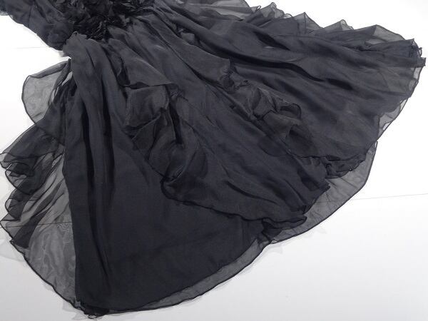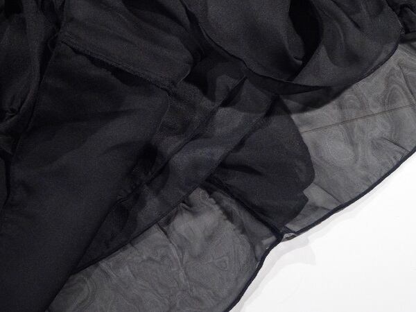 全体がフリルになったシルクシフォンワンピ-スです。女優スタイルのワンランク上のとても素敵な一着です。左サイドファスナー有。裏地付き。