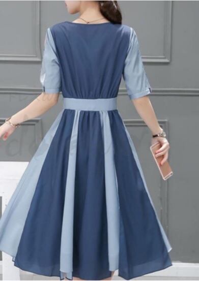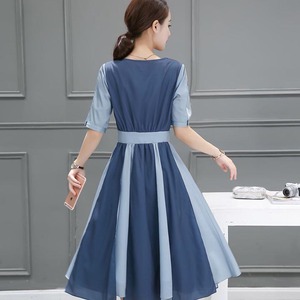 光沢ブル-のVネックシフォンワンピ-スです。ブル-を中心とした組み合わせで着心地抜群な素材でパ-ティ-はもちろんちょっとしたお出かけにもお役に立てる一着です。袖の開き具合が少し色っぽく女性度UP。裏地有り。左サイドファスナ-有。