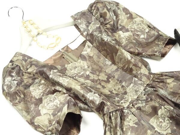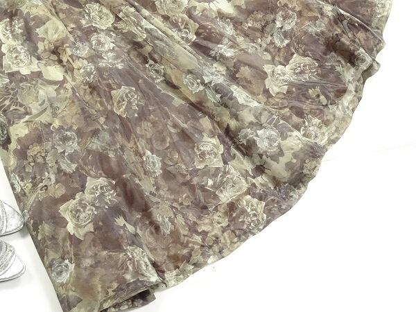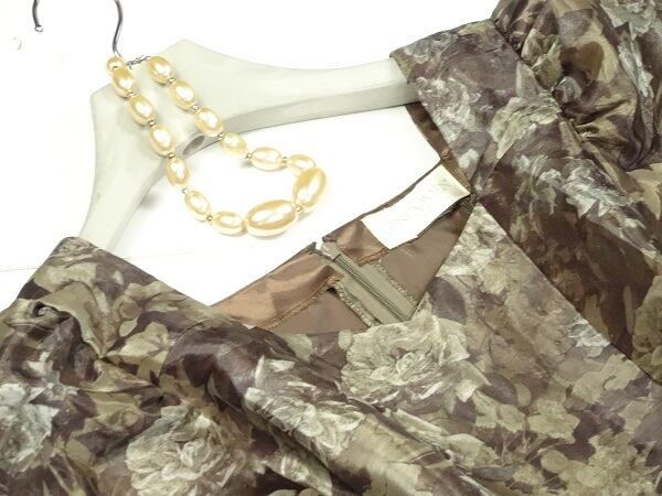 大人テイスト花柄のロングドレスです。艶やかなオーガンジー生地にシックな大柄の花柄を大胆にプリント。光を受けてきらきら輝き、華やかさとセクシーさをあわせもった魅力的なデザイン。背中ファスナー有。裏地付。