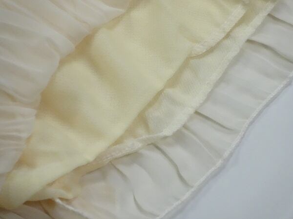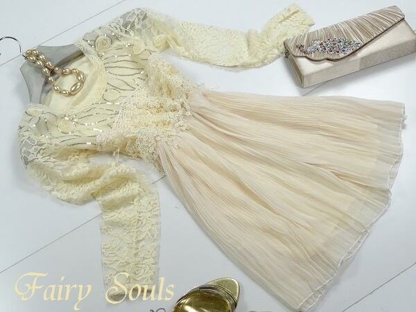 トップス部分に綺麗なレ-スをたっぷりと使い女性独特の柔らかさを引き立ててくれます。袖は透けるレ-スが使用され素肌を美しく見せてくれ華やぐ着映え力を発揮してくれます。スカ-トは細かいプリ-ツ仕立てで美しさと女性らしさを兼ね備えた女性の魅力を見事に浮彫にしてます。裏地あり。